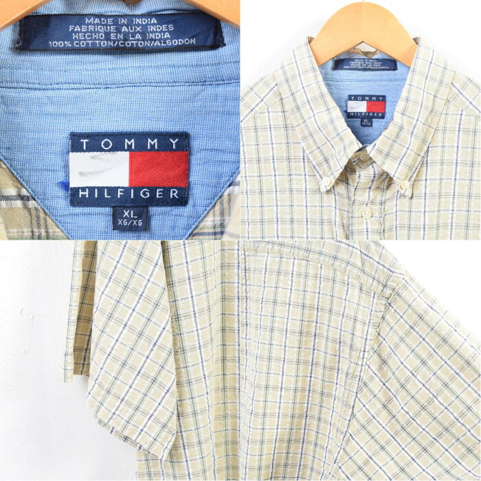 90年代 トミーヒルフィガー TOMMY HILFIGER シアサッカー 半袖 ボタンダウンチェックシャツ メンズXXL ヴィンテージ /wbd4335 【中古】 【190430】【SS1909】【PD2001】【CS2003】【SS2007】【CS2007】【SS2009】【JS2010】【SS2101】【CS2101】
