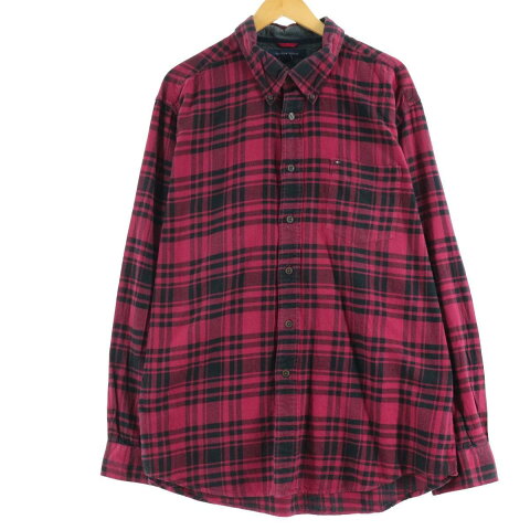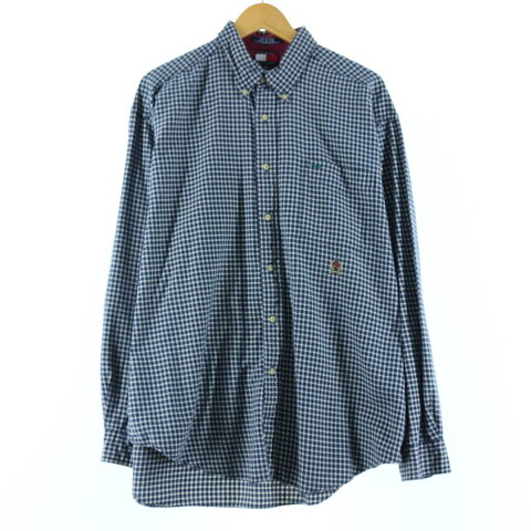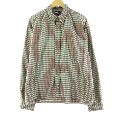 ポッキリSALE 大きいサイズ メンズUS-XLサイズ 00's TOMMY HILFIGER 長袖ボタンダウンシャツ チェック柄 ライトブラウン系 ワンポイント刺繍ロゴ 胸囲約131cm トミーヒルフィガー ワイシャツ アメリカ古着 USED BIGサイズ sh-2585【中古】